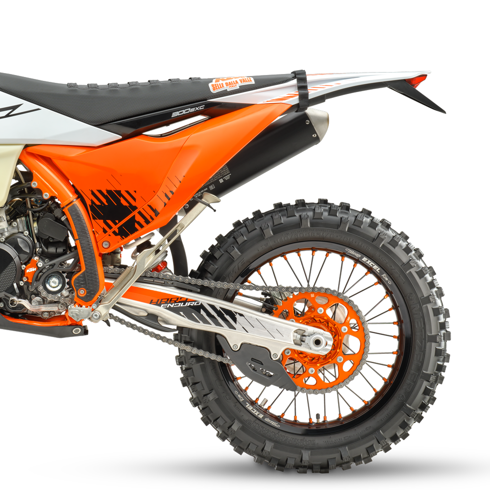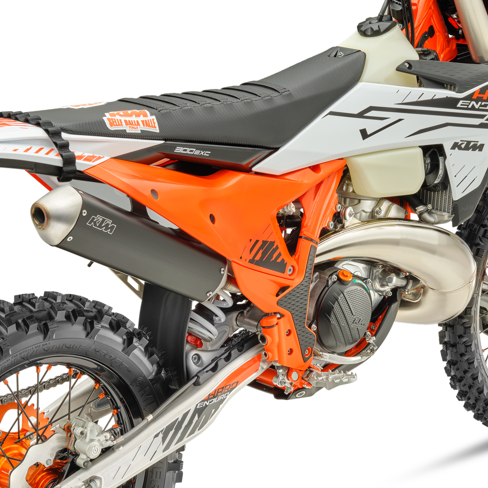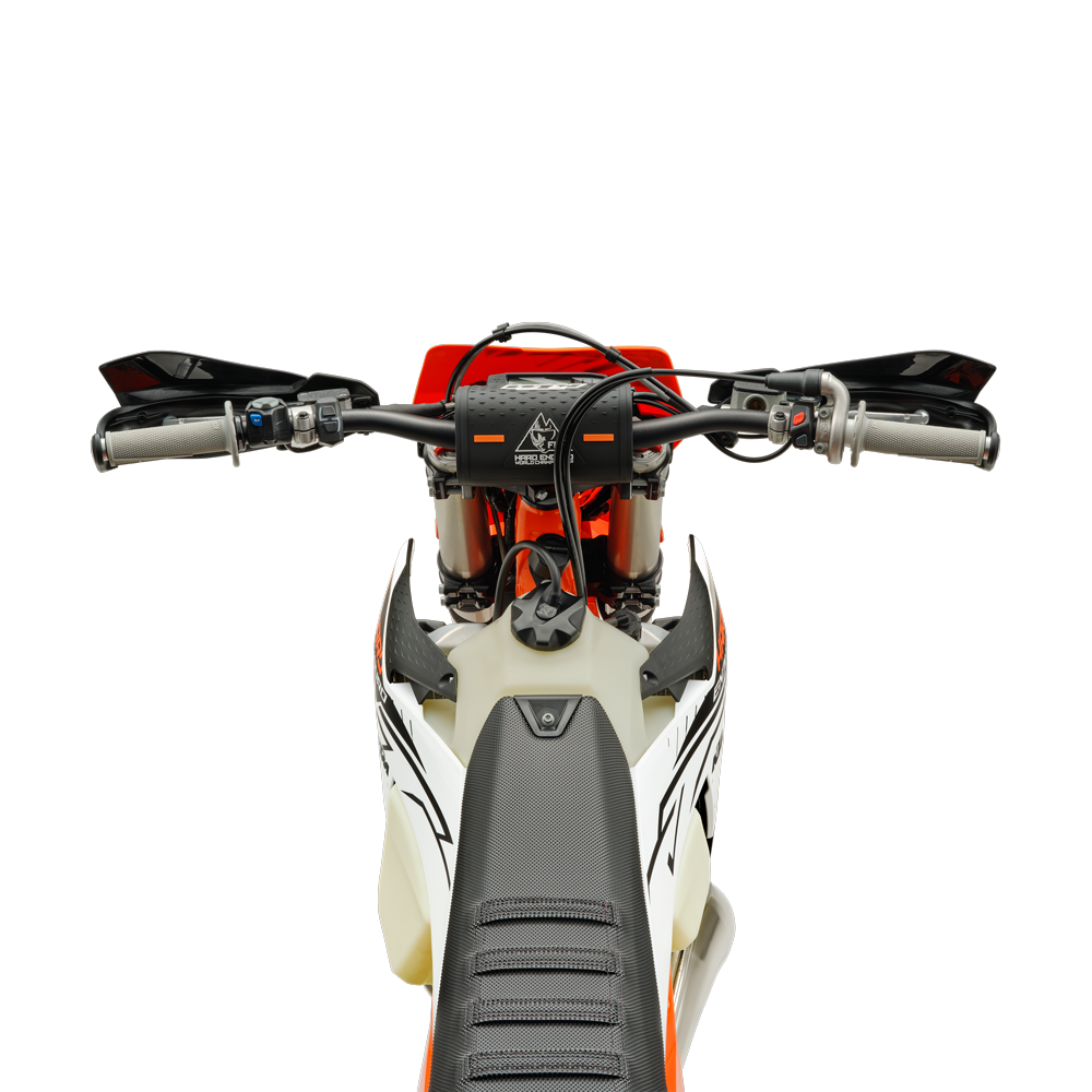 Met de WP XACT vering en WP XPLOR schokdemper biedt de 300 EXC Hardenduro maximale tractie en controle op de moeilijkste trails. De geoptimaliseerde geometrie en lichtgewicht frame zorgen voor precisie en stabiliteit, zelfs in de zwaarste secties.
