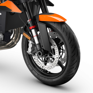 Met deze remmen blijft de 990 Duke feilloos controleerbaar, zelfs bij sportieve of onverwachte remmanoeuvres.