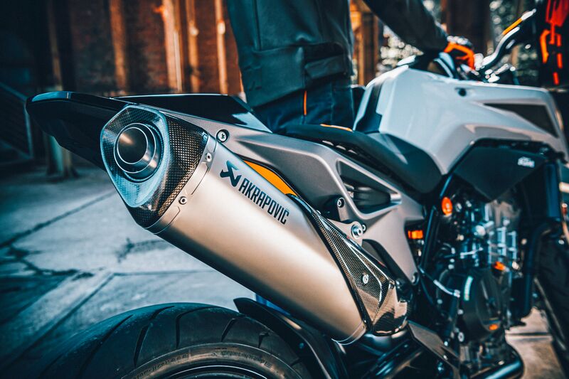 De demper is vervaardigd uit hoogwaardig titanium, wat zorgt voor gewicht besparing ten opzichte van de standaard uitlaat. Minder gewicht betekent een betere handling, snellere respons en een nog dynamischere rijervaring. Dit maakt de KTM 790 Duke nog wendbaarder en scherper in bochtenwerk.